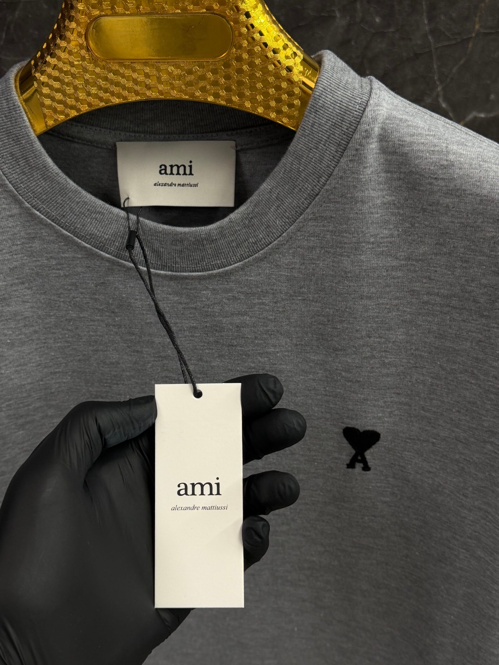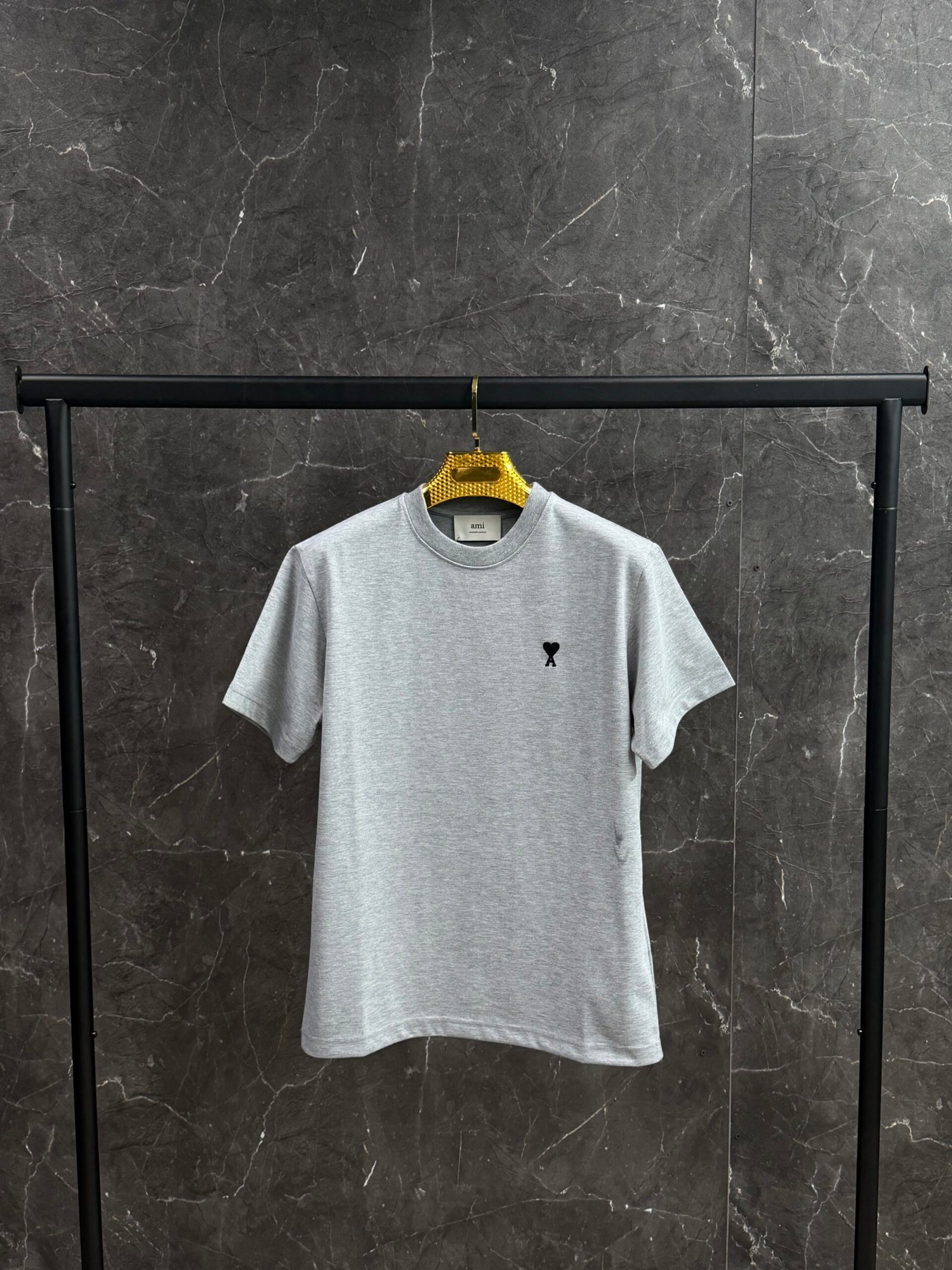 AMI Heart Logo Black T-Shirt Grey