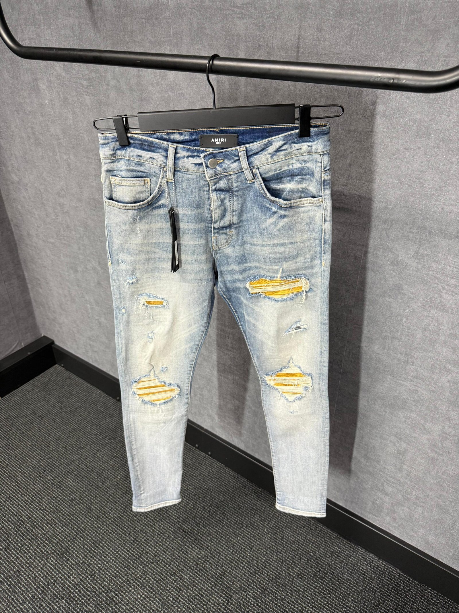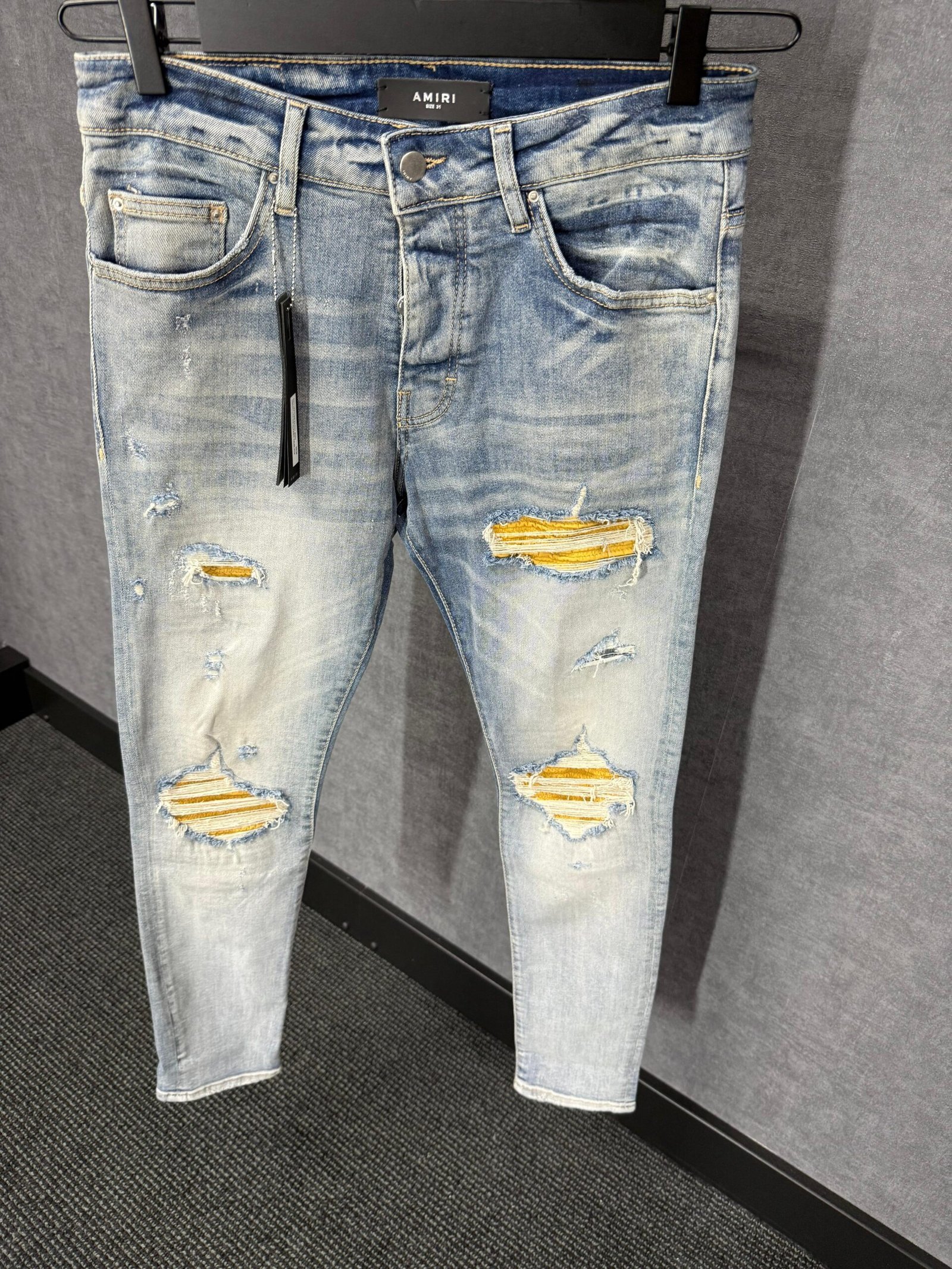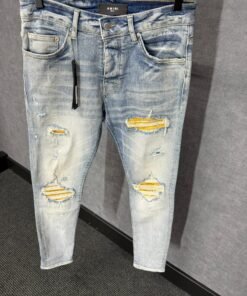 Amiri Blue Jeans Yellow Ribbels