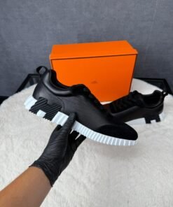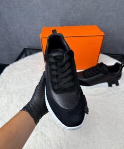 Hermes Bouncing Sneakers Black White Leather