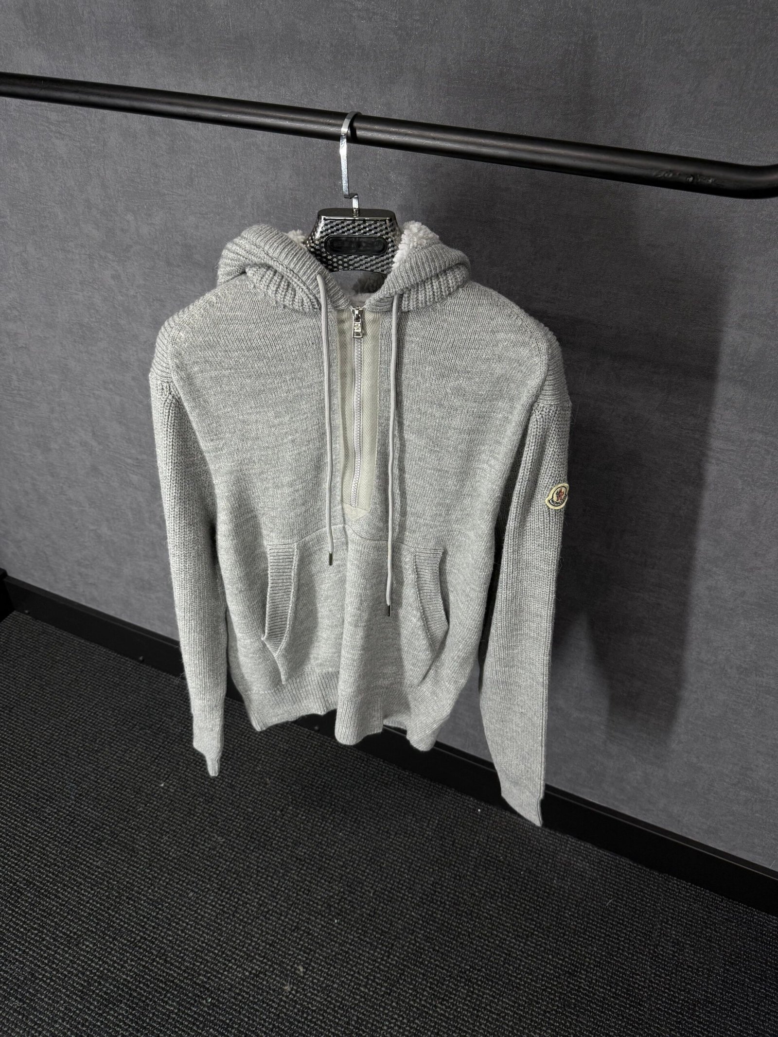 Moncler Grey Wool Hoody High Quality